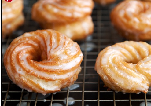 Crullers can also be baked. Preheat oven to 450°F. Pipe crullers onto a parchment-lined baking sheet at least 2-inches apart. Bake for five minutes then reduce oven to 350°F and bake another 15 minutes. Turn off heat, open the oven door a crack, and let crullers sit for 5 to 10 minutes. Glaze and serve.