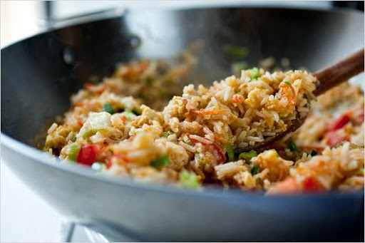 Advance preparation: Cooked rice will keep for three or four days in the refrigerator. The dish is a last-minute stir-fry.