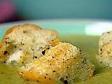 Spread seasoned bread onto a sheet pan and bake for about 15 minutes.