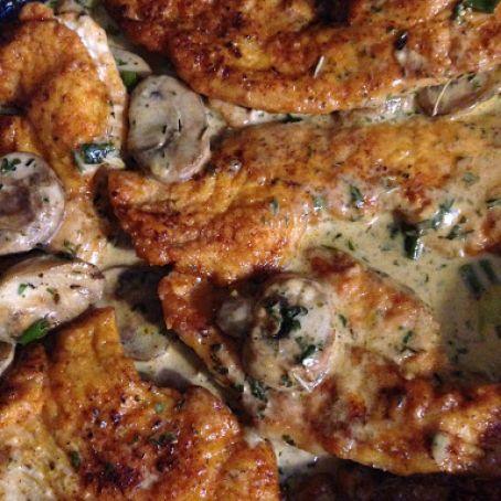 2. Add the herbs and heavy cream. Cook down until reduced to a lightly thickened sauce, about 2 minutes. Return turkey cutlets to skillet, cooke for two minutes, spooning sauce over cutlets