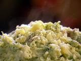 Heat the milk, cream, and butter in a small saucepan. Pour sauce into the potatoes and broccoli, mash together. Season, to taste, with salt and pepper.