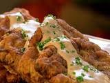 Place the steak carefully in the pan as the oil will splatter. Cook until golden brown, about 4 to 6 minutes on each side. When finished, place on a sheet tray lined with paper towels, hold in a warm oven and repeat the procedure with the other pieces of steak.