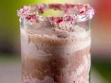 In a blender, add yogurt, ice, milk and chocolate syrup. Puree until smooth. Moisten the rims of each glass and press into crushed candy cane. Drizzle chocolate syrup in each glass then pour in smoothie.