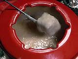Turn the pot down to a simmer. Whisk together the cornstarch with the Kirsch in a small bowl, and add to the fondue pot along with the garlic clove.