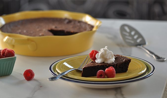 This luscious chocolate dessert is like a fudgy brownie in a pie shape. It’s easy to whip up—and absolutely delicious! Serve it warm with a whipped topping or your favorite vanilla ice cream or frozen dessert. For best results, do not replace the eggs in this recipe.