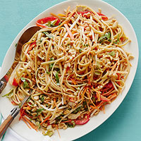 In large bowl, whisk first 6 ingredients; season. Toss with remaining ingredients; season.