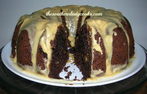 This great cake made from a mix with caramel frosting, walnuts and chocolate chips will satisfy any chocolate lover. From thesouthernladycooks.com