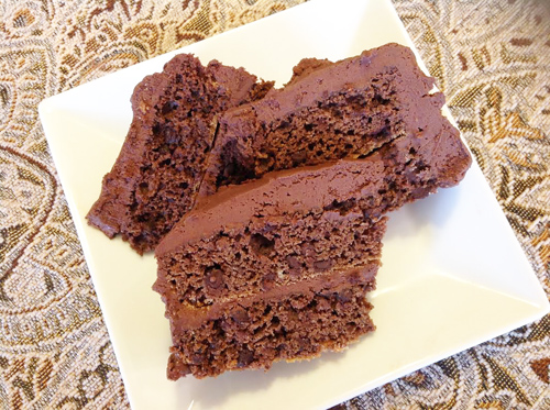 Remove from oven and allow to cool completely before topping with chocolate ganache frosting.