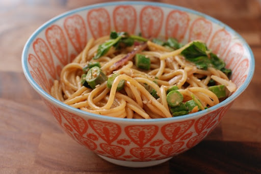 NOODLES****Udon noodles with Asparagus, Scallions and Hot and Sour Sauce