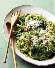 A twist on pesto -- with parsley and walnuts -- gives fettuccine springtime color and freshness. It's sure to impress the fussiest guests.