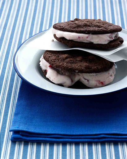 Assemble sandwiches: Scoop 1/3 cup ice cream onto flat side of each of 6 cookies. Top each with another cookie, and press gently to form a sandwich (you have extra cookies, in case of breakage).