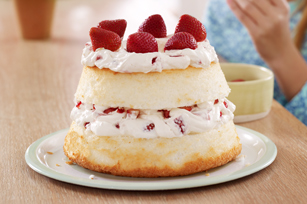 Refrigerate 1 hour. Arrange remaining berries on top of cake before serving.