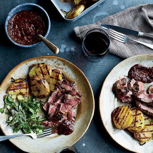 Grilled Butterflied Leg of Lamb with Ancho-Huckleberry Sauce