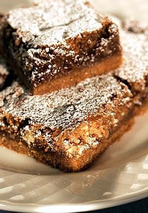 3. Sprinkle a light coating of sifted powdered sugar over the pan if desired, and cut into 24 bars. The bars can be made 1 day in advance. Wrap in plastic and keep at room temperature.
