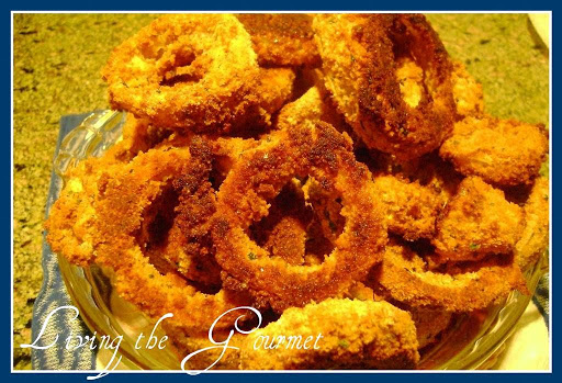 Combine flour and backing powder in a shallow dish. Lightly beat eggs in another shallow dish. Combine breadcrumbs and seasoning in a third shallow dish. Working with one ring at a time, remove from the water, letting any excess drip off. Coat in flour shaking off excess. Dip in egg and let any excess drip off. Then coat in breadcrumb mixture, shaking off any excess.