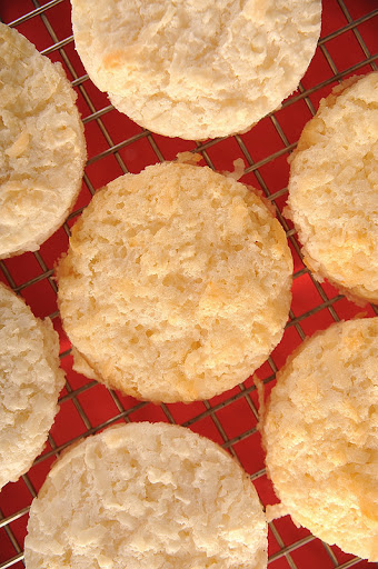 Cool for a few minutes before removing from baking sheets. (NOTE: For a prettier look, cut the cookies with a round biscuit cutter to trim off browned edges.)