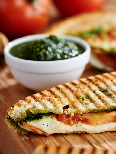 How about an ooey, gooey, grown-up grilled cheese? You'll love the flavor of the juicy tomatoes, fresh pesto, and that creamy/salty notes of the cheeses.
