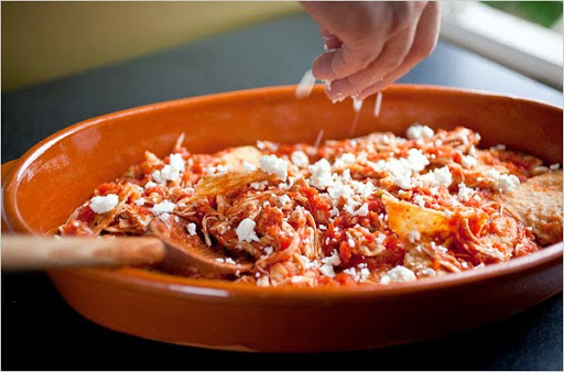 - Chilaquiles is a sort of top-of-the-stove tortilla casserole. In its simplest form, it consists of a freshly made salsa into which you stir fried tortillas. Sometimes eggs are added, and sometimes chicken as well.