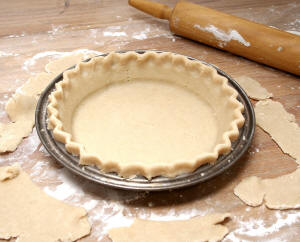Press 2/3 of mixture into pie plate starting with the edges. Cover the bottom too. Crimp top of edge.