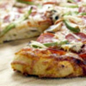 If dough resists or otherwise retracts, let it rest for a few minutes, then gently coax it to fit pan. Drizzle a little bit of olive oil on top of dough. Spread on tomato sauce and topping of your choice