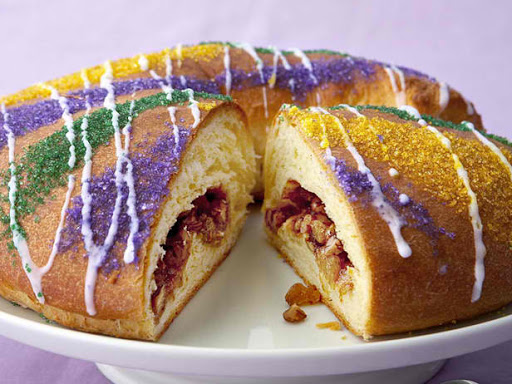 - 1 dry bean or plastic King Cake baby (available at party-supply stores or mardigrasday.com)