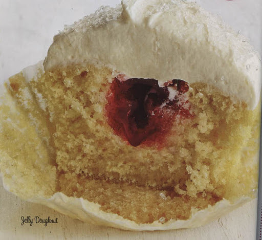 3. For Jelly Doughnut Make Vanilla Cupcakes; cool. Fill a pastry bag (with a large tip) with 1/2 cup seedless raspberry or strawberry jam. Insert into the top of the cupcakes and pipe in the jam. Frost with Vanilla Frosting; top with sanding sugar or sprinkles.