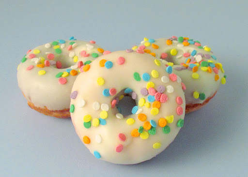 Dip half of donut into frosting, then cover with sprinkles and let sit until dry.
