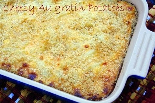 In a separate bowl mix the bread crumbs and melted butter together and then sprinkle over the potatoes. Cover and bake at 350 for 20 minutes. Uncover and bake 5-10 additional minutes till bread crumb topping is golden brown.