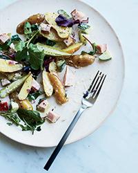 potatoes with half of the dressing. Fold in the ham and cucumber and season with salt and pepper. Transfer the salad to plates or a platter.