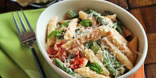 Three-Cheese Ziti with Ricotta, Asparagus and Cherry Tomatoes