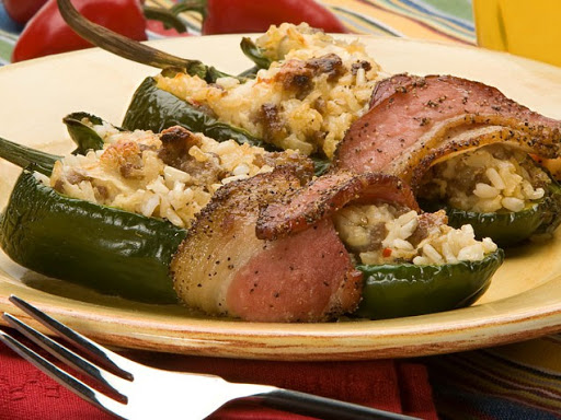 Wrap pepper with a slice of bacon.