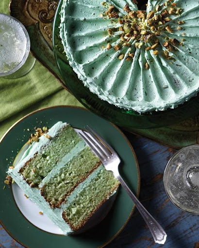 13. Make pistachio buttercream by beating butter until smooth and lightened in color in the bowl of an electric mixer.