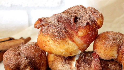 While warm, toss evenly in cinnamon-sugar. If desired, serve with maple syrup.