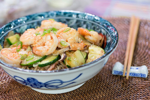 Shrimp and udon noodles with sautéed vegetables is easy to make and loaded with flavor! The combination of garlic, soy sauce and chicken stock is delicious.