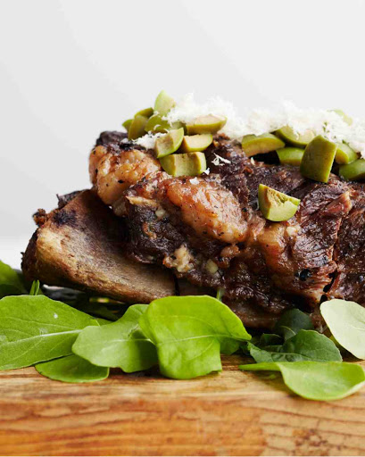 When meat is cool enough to handle, cut off the bone, remove cartilage, turn the meat over, and cut into 1 1/2-inch slices. Place slices on the bone and garnish with horseradish and olives. Serve immediately with lemon wedges.