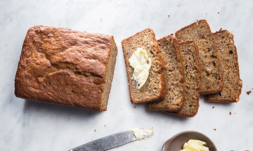Bake, rotating halfway through, until batter is set, top is dark golden brown and starting to crack, sides are starting to pull away from pan, and a tester inserted into center of bread comes out clean, 60–65 minutes. Cool in pan on a wire rack at least 15 minutes. Run a butter knife around perimeter of pan to loosen loaf, then tap pan gently on its side until loaf releases. Transfer to a cutting board or plate and let cool completely before slicing.