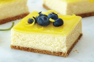SPOON lemon glaze over cheesecake. Refrigerate 1 hour or until firm. Use parchment handles to remove cheesecake from pan before cutting to serve.