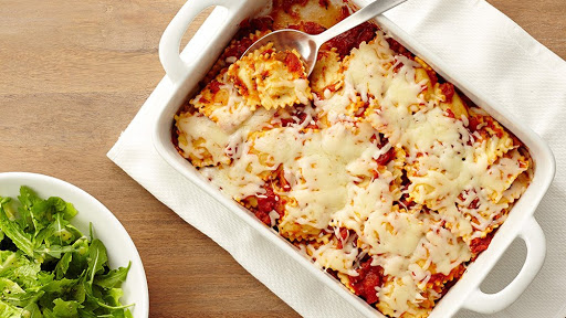 1 Heat oven to 400°F. In 3-quart saucepan or 4-quart Dutch oven, cook ravioli as directed on package; drain and set aside.