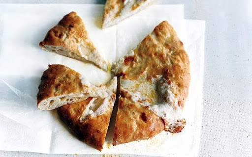 - In the remote mountains of Georgia, the star ingredient of this bread called khachapuri-akin to pizzais the firm but creamy salted cow's-milk cheese called sulguni. A blend of Havarti and mozzarella w