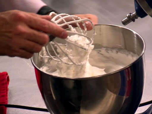 Remove the bowl from the heat and whisk on high speed until stiff peaks form, about 5 minutes. Continue beating on low speed until cool, about 15 more minutes.