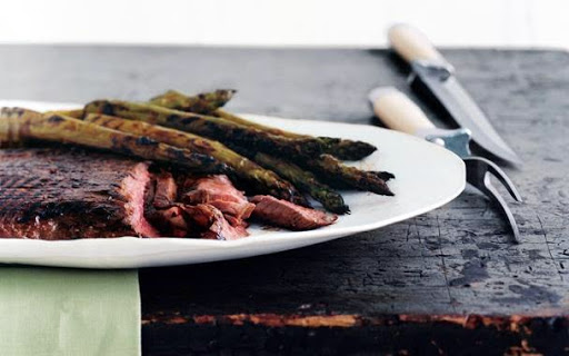 - The glaze, which goes on the asparagus as well as the steak, has a rich sweetness that is transformed into something wonderfully complex once it hits the heat of the grill.