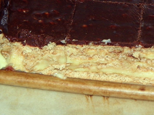 This No-Bake Boston Cream Pie Strata is layers of vanilla pudding cream, graham crackers topped of with a delicious chocolate sauce.