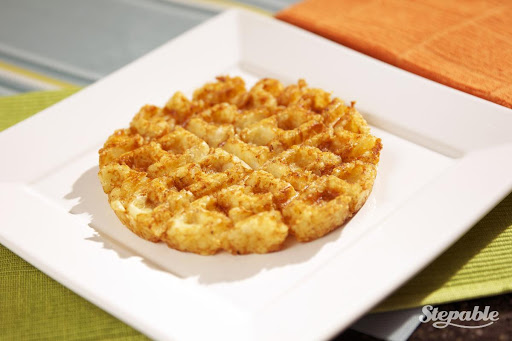 Carefully life the hash brown out of the waffle iron and onto your plate.