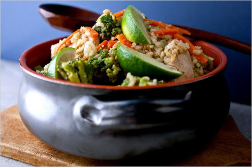FRIED BROWN RICE w/CHICKEN & VEGGIES