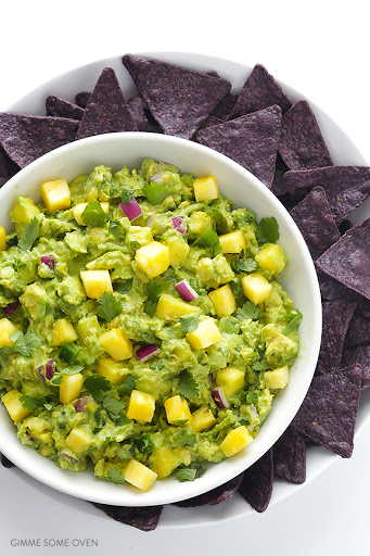 Serve immediately, garnished with extra fresh pineapple and chopped cilantro, served with corn tortilla chips. Or cover the bowl with plastic wrap (so that the plastic is literally touching the entire top layer of the guacamole) and refrigerate.