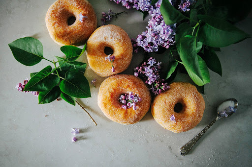 Allow each donut to cool for a minute, then, while each donut is still hot, transfer them one by one into the bowl of lilac sugar and toss until completely coated. Allow the donuts to rest for a few more minutes before serving/eating. Be sure to eat while warm since they are best on the day they are made!