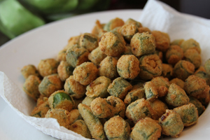 Carefully add okra to the hot oil and cook until golden brown. (It will be necessary to fry the okra in batches.)