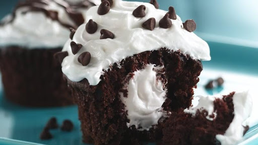 Spoon frosting into corner of resealable heavy-duty food-storage plastic bag. Cut about 1/4 inch off corner of bag. Gently push cut corner of bag into center of cupcake. Squeeze about 2 teaspoons frosting into center of each cupcake for filling, being careful not to split cupcake. Frost tops of cupcakes with remaining frosting.