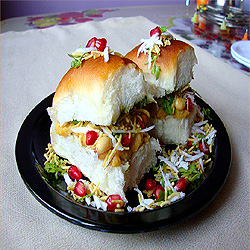 3.Top with chopped coriander,peanuts,grated coconut ,sev, pomegranate