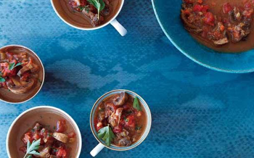 Add white mushrooms to pot with 1 tsp salt and 1/2 tsp pepper. Cook, stirring, until mushrooms are tender, 6 to 8 minutes. Stir in tomatoes, remaining 6 cups water, and porcini-soaking liquid. Simmer, partially covered, 30 minutes.